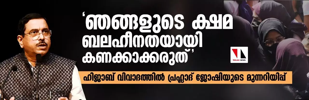 'ഞങ്ങളുടെ ക്ഷമ ബലഹീനതയായി കണക്കാക്കരുത്';ഹിജാബ് വിവാദത്തില് പ്രഹ്ലാദ് ജോഷിയുടെ മുന്നറിയിപ്പ്