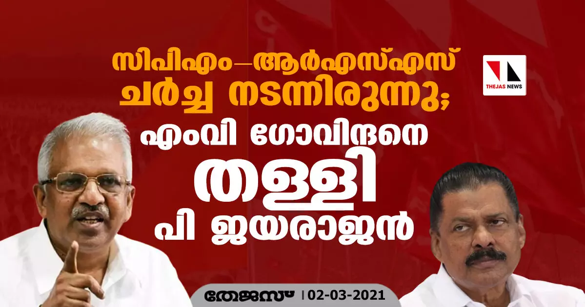 സിപിഎം-ആര്എസ്എസ് ചര്ച്ച നടന്നിരുന്നു; എംവി ഗോവിന്ദനെ തള്ളി പി ജയരാജന്