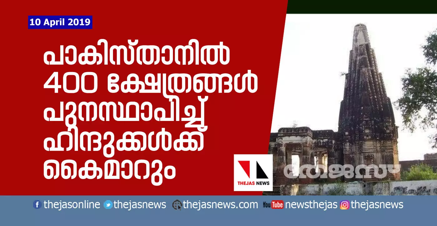 പാകിസ്താനില് 400 ക്ഷേത്രങ്ങള് പുനസ്ഥാപിച്ച് ഹിന്ദുക്കള്ക്ക് കൈമാറും
