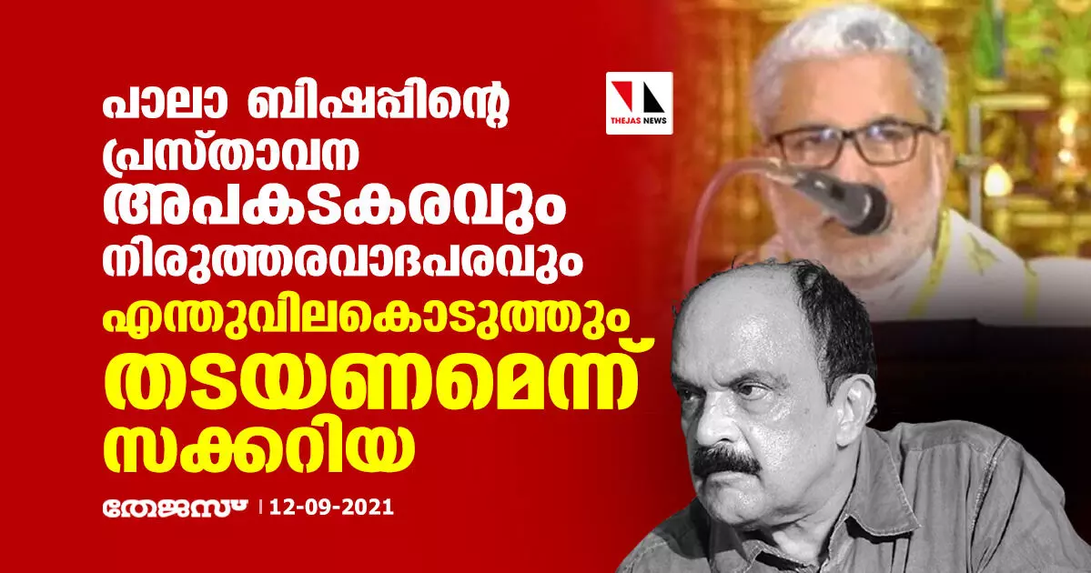 പാലാ ബിഷപ്പിന്റെ പ്രസ്താവന അപകടകരവും നിരുത്തരവാദപരവും; എന്തുവിലകൊടുത്തും തടയണമെന്ന് സക്കറിയ