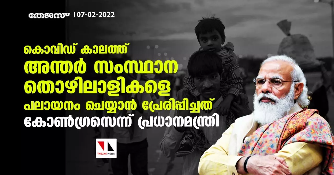 കൊവിഡ് കാലത്ത് അന്തർ സംസ്ഥാന തൊഴിലാളികളെ പലായനം ചെയ്യാൻ പ്രേരിപ്പിച്ചത് കോൺഗ്രസെന്ന് പ്രധാനമന്ത്രി