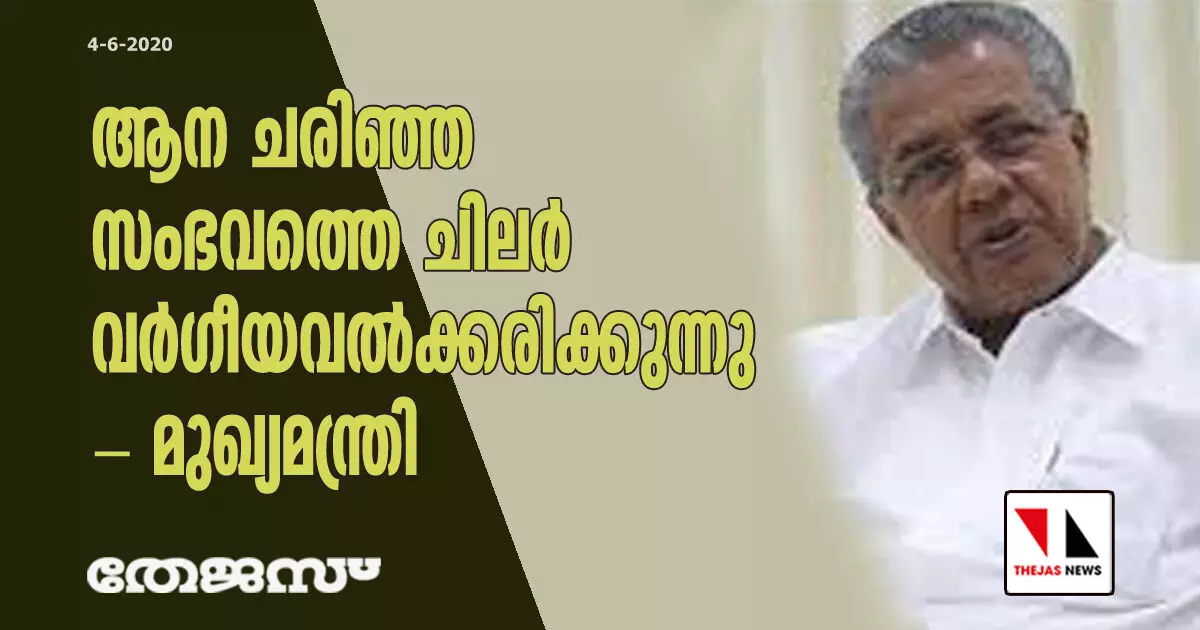 ആന ചരിഞ്ഞ സംഭവത്തെ ചിലര് വര്ഗീയവല്കരിക്കുന്നു.; മുഖ്യമന്ത്രി