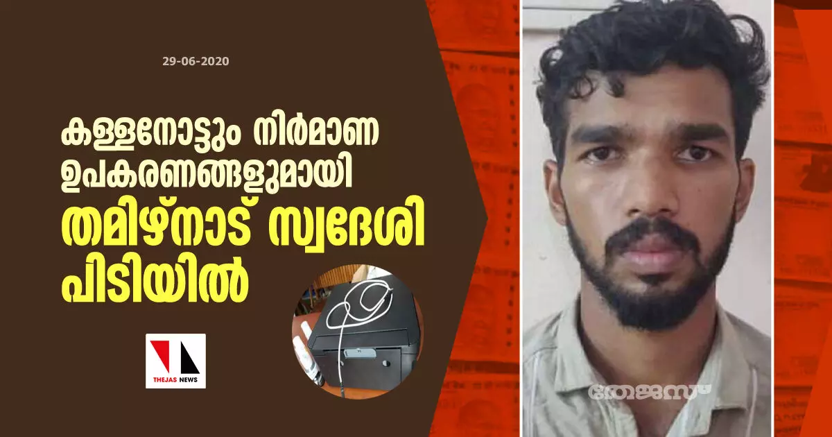 കള്ളനോട്ടും നിര്മാണ ഉപകരണങ്ങളുമായി തമിഴ്നാട് സ്വദേശി പിടിയില്