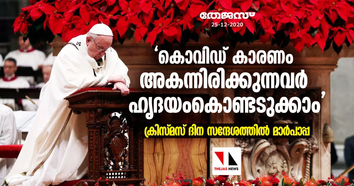 'കൊവിഡ് കാരണം അകന്നിരിക്കുന്നവര് ഹൃദയംകൊണ്ടടുക്കാം'; ക്രിസ്മസ് ദിന സന്ദേശത്തില് മാര്പാപ്പ