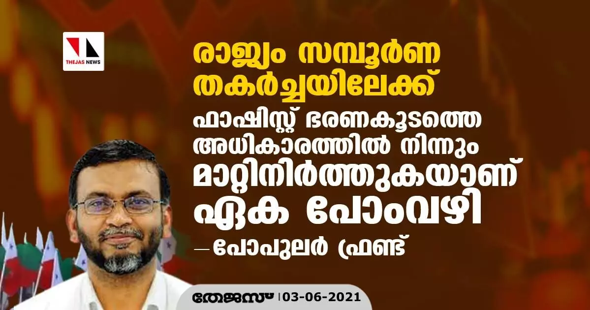 രാജ്യം സമ്പൂര്ണ തകര്ച്ചയിലേക്ക്; ഫാഷിസ്റ്റ് ഭരണകൂടത്തെ അധികാരത്തില് നിന്നും മാറ്റിനിര്ത്തുകയാണ് ഏക പോംവഴി: പോപുലര് ഫ്രണ്ട്