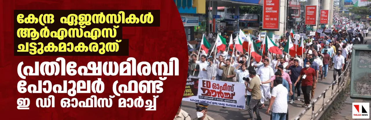 കേന്ദ്ര ഏജന്സികള് ആര്എസ്എസ്സിന്റെ ചട്ടുകമാകരുത്; പ്രതിഷേധമിരമ്പി പോപുലര് ഫ്രണ്ടിന്റെ ഇ ഡി ഓഫിസ് മാര്ച്ച്