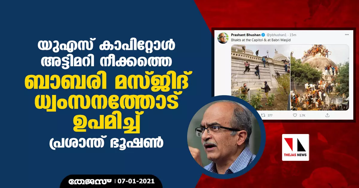 യുഎസ് കാപിറ്റോള് അട്ടിമറി നീക്കത്തെ ബാബരി മസ്ജിദ് ധ്വംസനത്തോട് ഉപമിച്ച് പ്രശാന്ത് ഭൂഷണ്
