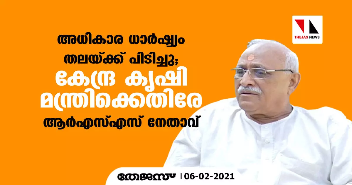 അധികാര ധാര്ഷ്ട്യം തലയ്ക്ക് പിടിച്ചു; കേന്ദ്ര കൃഷി മന്ത്രിക്കെതിരേ മുതിര്ന്ന ആര്എസ്എസ് നേതാവ്