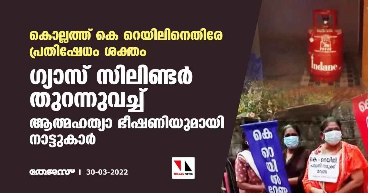 കൊല്ലത്ത് കെ റെയിലിനെതിരേ പ്രതിഷേധം ശക്തം; ഗ്യാസ് സിലിണ്ടര് തുറന്നുവച്ച് ആത്മഹത്യാ ഭീഷണിയുമായി നാട്ടുകാര്