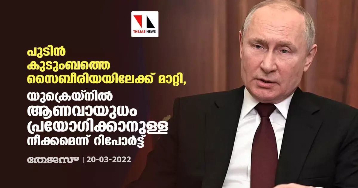 പുടിന് കുടുംബത്തെ സൈബീരിയയിലേക്ക് മാറ്റി, യുക്രെയ്നില് ആണവായുധം പ്രയോഗിക്കാനുള്ള നീക്കമെന്ന് റിപോര്ട്ട്