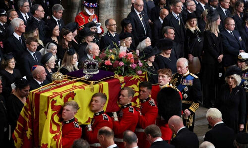 എലിസബത്ത് രാജ്ഞിയുടെ മരണത്തില് ഇന്ത്യയില് ഇന്ന് ദുഃഖാചരണം. രാജ്ഞിയോടുള്ള ആദരസൂചകമായി ദേശീയ പതാക പകുതി താഴ്ത്തിക്കെട്ടും. എല്ലാ സര്ക്കാര് ആഘോഷ പരിപാടികളും ഇന്ന് ഒഴിവാക്കിയിട്ടുണ്ട്. ഒരു ദിവസത്തെ ദുഃഖാചരണത്തിനാണ് കേന്ദ്രസര്ക്കാര് ആഹ്വാനം ചെയ്തിരിക്കുന്നത്. എലിസബത്ത് രാജ്ഞിയുടെ നിര്യാണത്തില് രാഷ്ട്രപതി, ഉപരാഷ്ട്രപതി, പ്രധാനമന്ത്രി എന്നിവര് നേരത്തെ അനുശോചനം രേഖപ്പെടുത്തിയിരുന്നു.