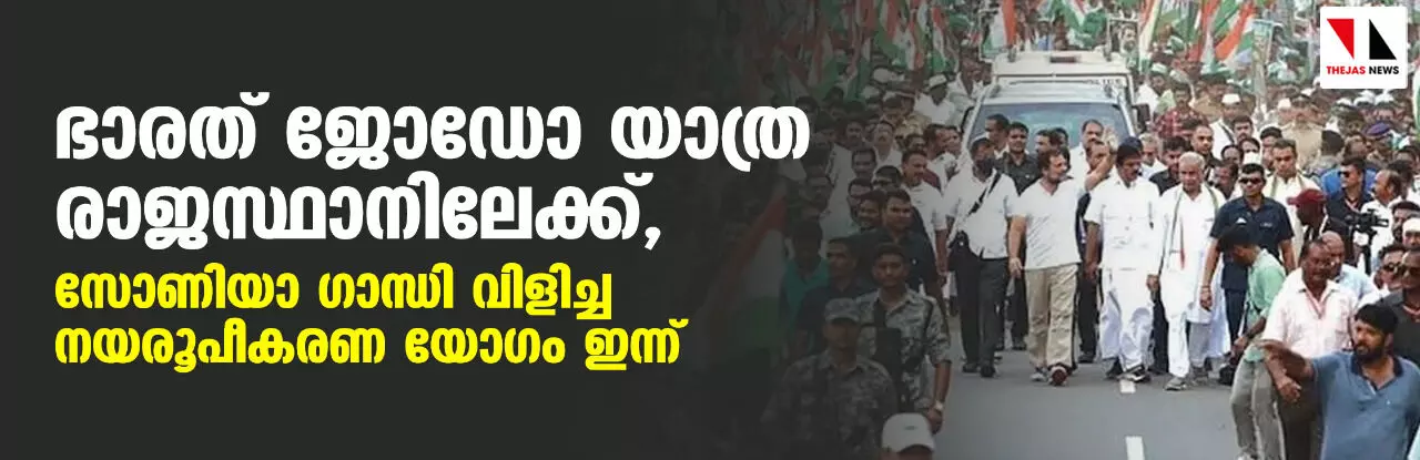 ഭാരത് ജോഡോ യാത്ര രാജസ്ഥാനിലേക്ക്, സോണിയാ ഗാന്ധി വിളിച്ച നയരൂപീകരണ യോഗം ഇന്ന്