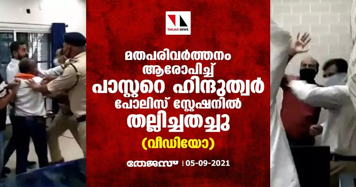 മതപരിവര്ത്തനം ആരോപിച്ച് പാസ്റ്ററെ ഹിന്ദുത്വര് പോലിസ് സ്റ്റേഷനില് തല്ലിച്ചതച്ചു (വീഡിയോ)
