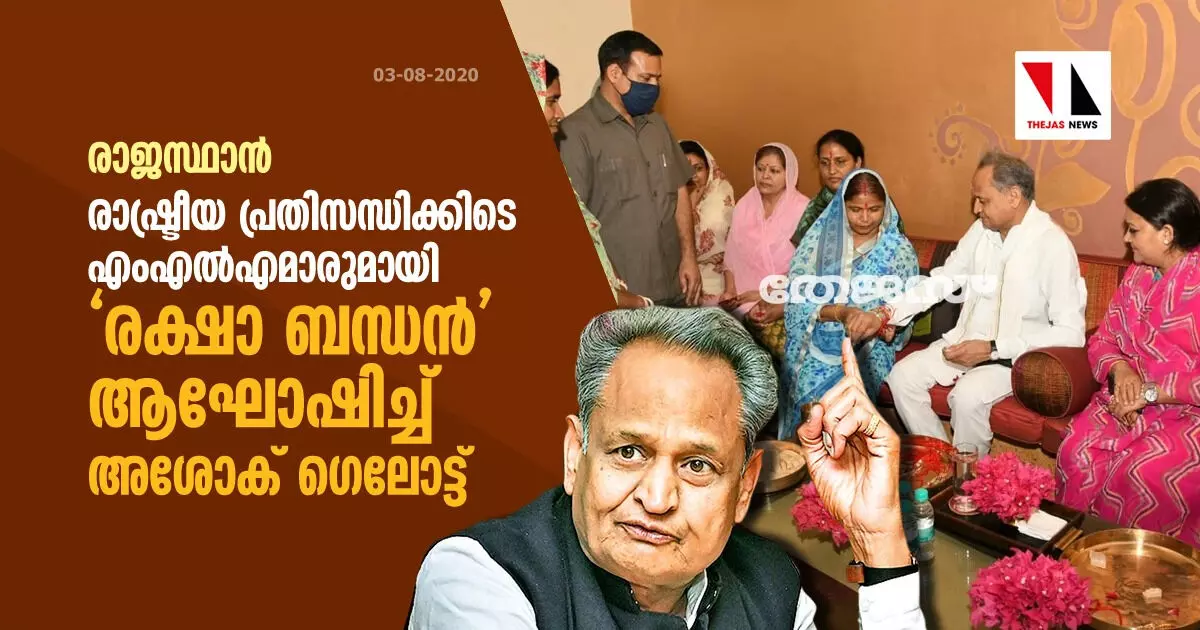 രാജസ്ഥാന്: രാഷ്ട്രീയ പ്രതിസന്ധിക്കിടെ എംഎല്എമാരുമായി 'രക്ഷാ ബന്ധന്' ആഘോഷിച്ച് അശോക് ഗെലോട്ട്