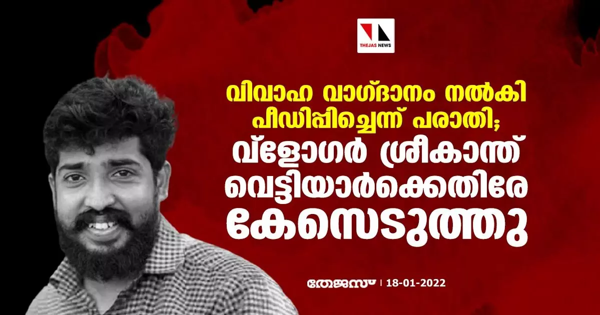 വിവാഹ വാഗ്ദാനം നല്കി പീഡിപ്പിച്ചെന്ന് പരാതി; വ്ളോഗര് ശ്രീകാന്ത് വെട്ടിയാര്ക്കെതിരേ കേസെടുത്തു