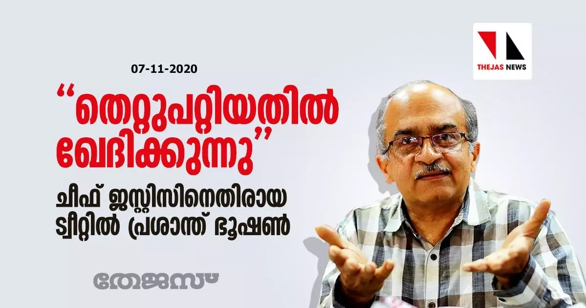 'തെറ്റുപറ്റിയതില് ഖേദിക്കുന്നു'; ചീഫ് ജസ്റ്റിസിനെതിരായ ട്വീറ്റില് പ്രശാന്ത് ഭൂഷണ്