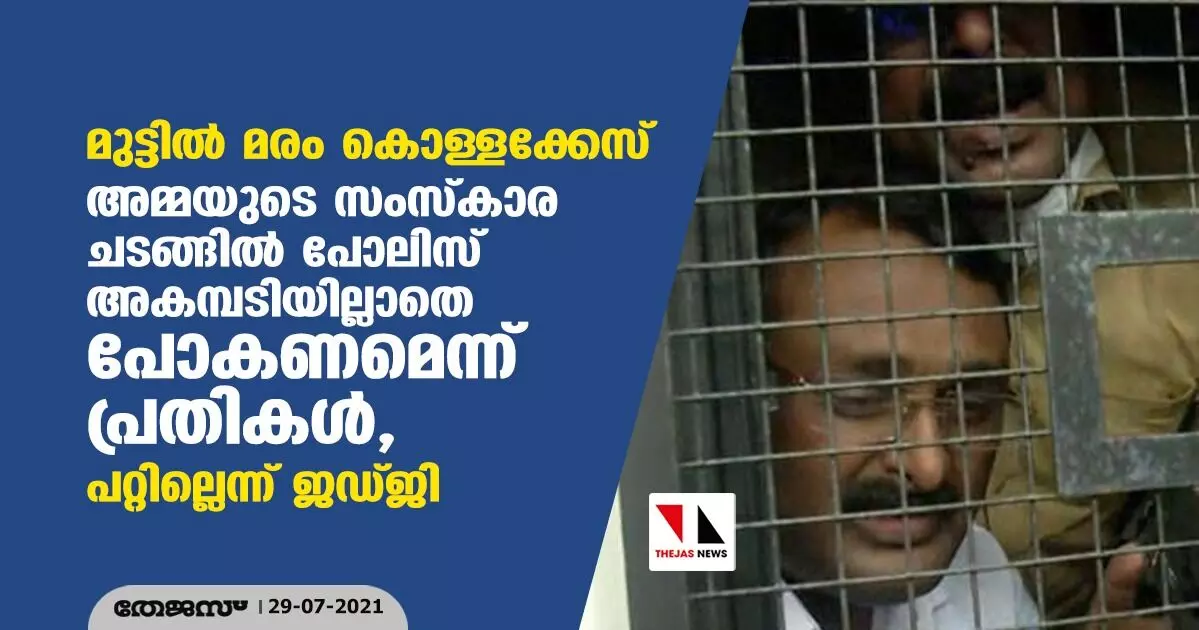 മുട്ടിൽ മരം കൊള്ളക്കേസ്: അമ്മയുടെ സംസ്കാര ചടങ്ങില് പോലിസ് അകമ്പടിയില്ലാതെ പോകണമെന്ന് പ്രതികൾ, പറ്റില്ലെന്ന് ജഡ്ജി