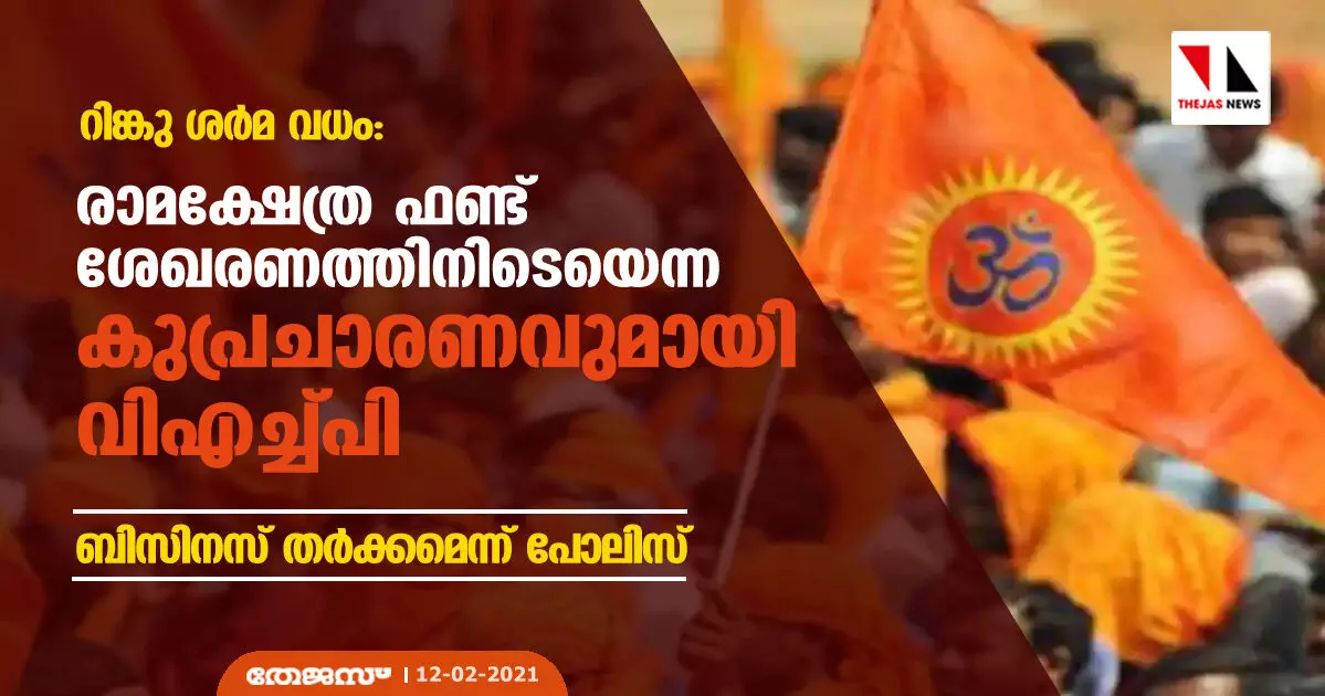 റിങ്കു ശര്മ വധം: രാമക്ഷേത്ര ഫണ്ട് ശേഖരണത്തിനിടെയെന്ന കുപ്രചാരണവുമായി വിഎച്ച്പി; ബിസിനസ് തര്ക്കമെന്ന് പോലിസ്