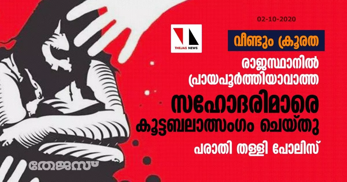 വീണ്ടും ക്രൂരത: രാജസ്ഥാനില് പ്രായപൂര്ത്തിയാവാത്ത സഹോദരിമാരെ കൂട്ടബലാത്സംഗം ചെയ്തു; പരാതി തള്ളി പോലിസ്