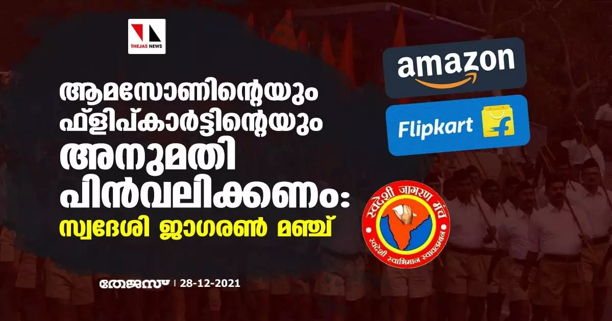 ആമസോണിന്റെയും ഫ്ലിപ്കാർട്ടിന്റെയും അനുമതി പിൻവലിക്കണമെന്ന് സ്വദേശി ജാഗരൺ മഞ്ച്