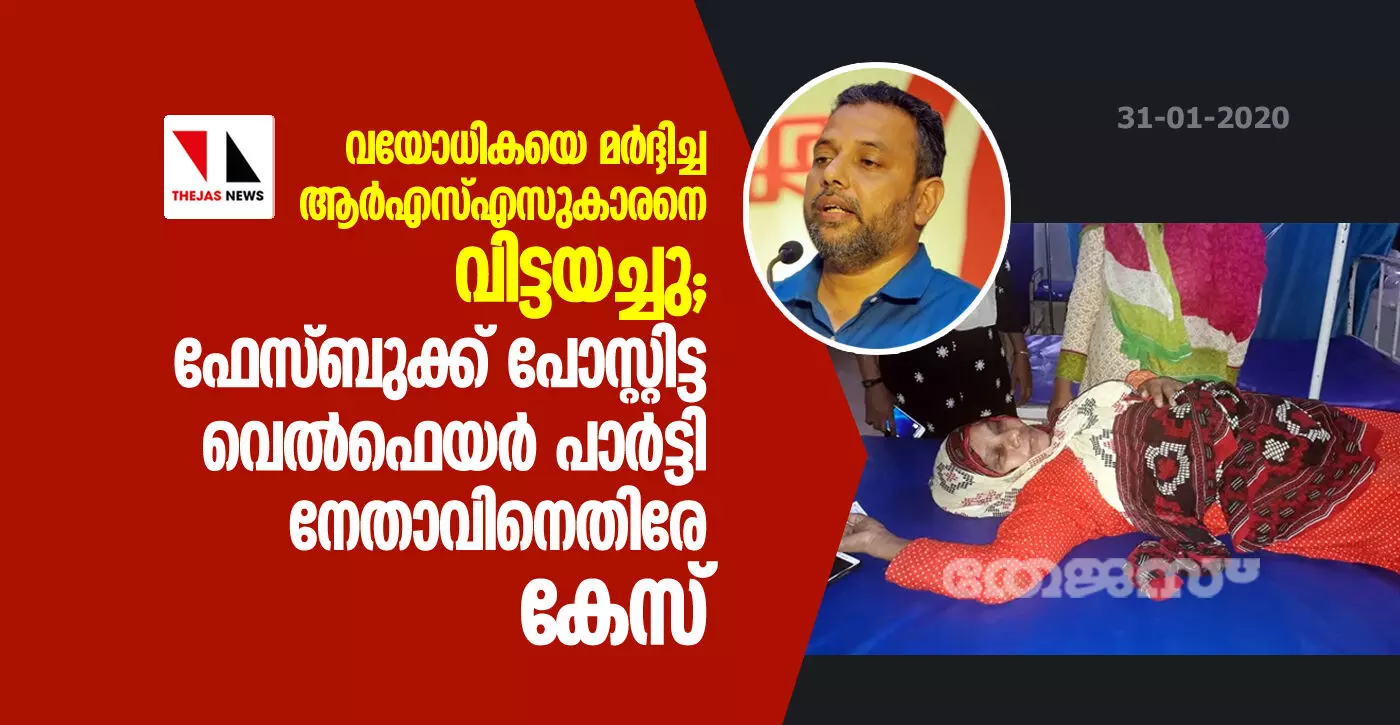 വയോധികയെ മര്ദ്ദിച്ച ആര്എസ്എസുകാരനെ വിട്ടയച്ചു; ഫേസ്ബുക്ക് പോസ്റ്റിട്ട വെല്ഫെയര് പാര്ട്ടി നേതാവിനെതിരേ കേസ്