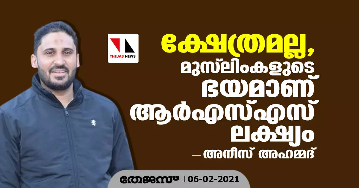 ക്ഷേത്രമല്ല, മുസ്ലിംകളുടെ ഭയമാണ് ആര്എസ്എസ് ലക്ഷ്യം: അനീസ് അഹമ്മദ്