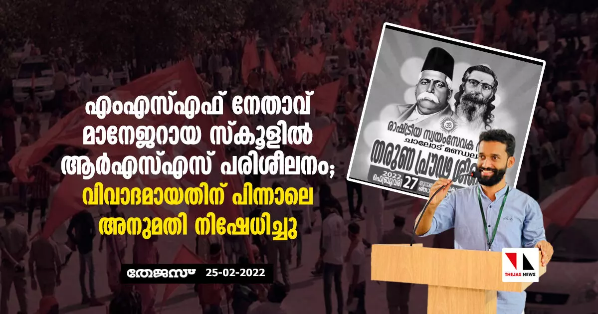 എംഎസ്എഫ് നേതാവ് മാനേജറായ സ്കൂളില് ആര്എസ്എസ് പരിശീലനം; വിവാദമായതിന് പിന്നാലെ അനുമതി നിഷേധിച്ചു