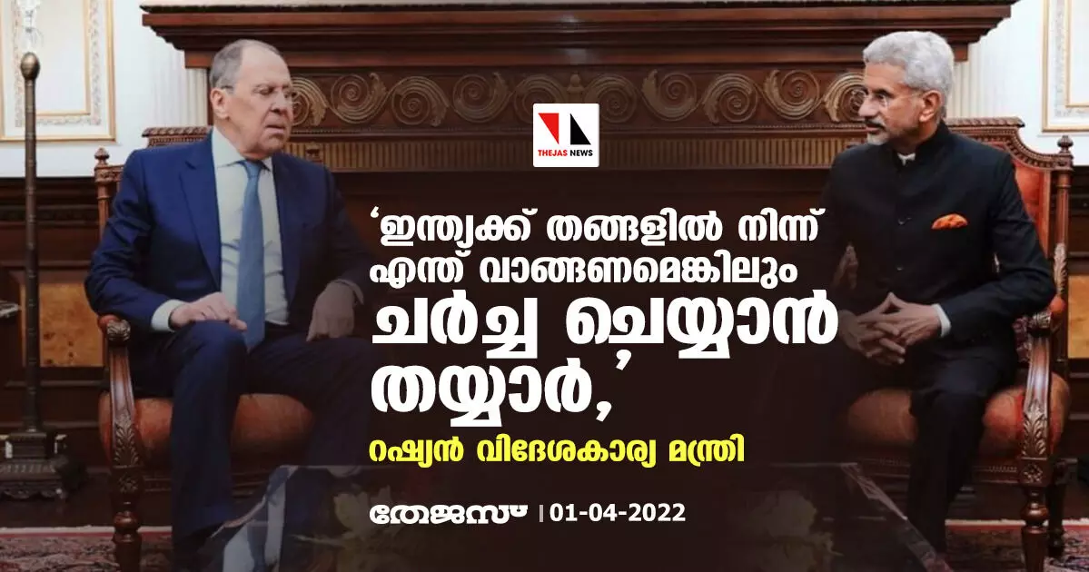 "ഇന്ത്യക്ക് തങ്ങളിൽ നിന്ന് എന്ത് വാങ്ങണമെങ്കിലും ചർച്ച ചെയ്യാൻ തയ്യാർ,": റഷ്യൻ വിദേശകാര്യ മന്ത്രി