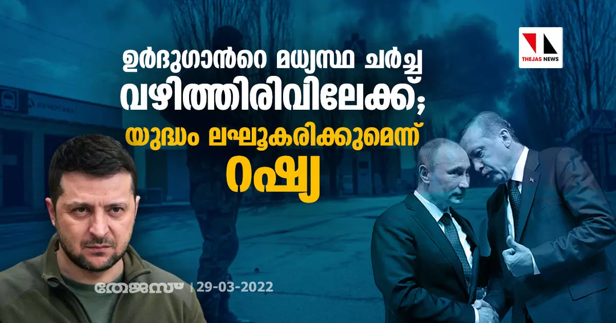 ഉര്ദുഗാന്റെ മധ്യസ്ഥതയിലുള്ള ചര്ച്ച വഴിത്തിരിവിലേക്ക്; യുദ്ധം ലഘൂകരിക്കുമെന്ന് റഷ്യ