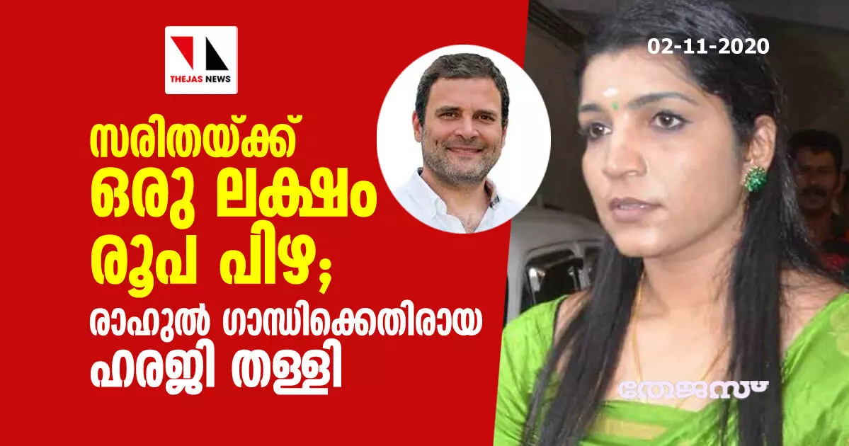 സരിതയ്ക്ക് ഒരു ലക്ഷം രൂപ പിഴ; രാഹുല് ഗാന്ധിക്കെതിരായ ഹരജി തള്ളി