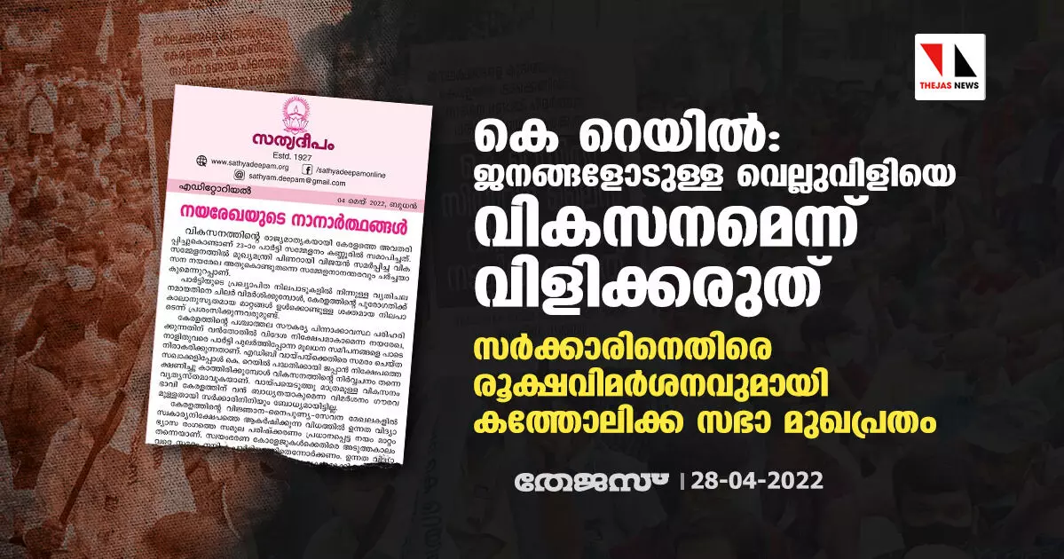 കെ റെയില്:ജനങ്ങളോടുള്ള വെല്ലുവിളിയെ വികസനമെന്ന് വിളിക്കരുത് ;സര്ക്കാരിനെതിരെ രൂക്ഷവിമര്ശനവുമായി കത്തോലിക്ക സഭാ മുഖപ്രതം