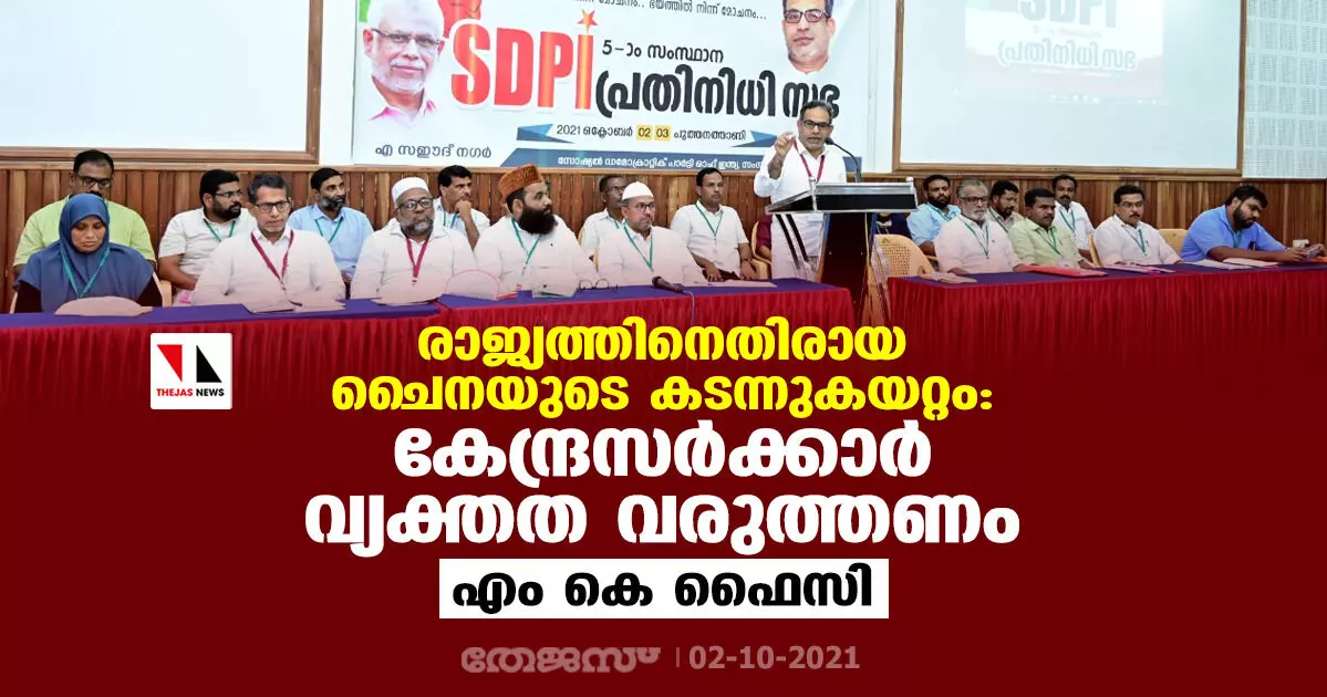 രാജ്യത്തിനെതിരായ ചൈനയുടെ കടന്നുകയറ്റം: കേന്ദ്രസര്ക്കാര് വ്യക്തത വരുത്തണമെന്ന് എം കെ ഫൈസി