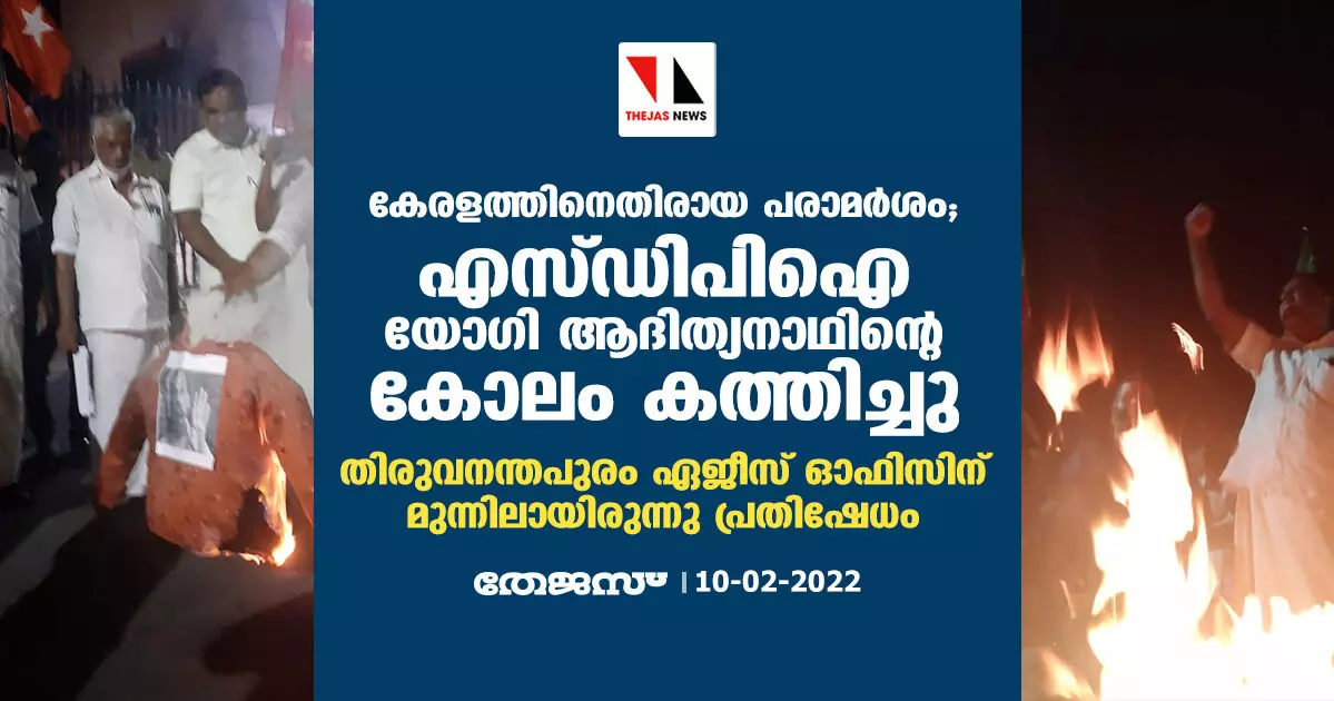 തിരുവനന്തപുരം: കേരളത്തെ അപമാനിച്ച ഉത്തര്പ്രദേശ് മുഖ്യമന്ത്രി യോഗി ആദിത്യനാഥിന്റെ കോലം എസ്ഡിപിഐ കത്തിച്ചു. തിരുവനന്തപുരം ഏജീസ് ഓഫിസിന് മുന്നിലാണ് യോഗിയുടെ കോലം കത്തിച്ചത്. കേരളത്തെ യുപി ആക്കാന് സംഘപരിവാര് കാലങ്ങളായി ശ്രമിക്കുകയാണെന്ന് മാര്ച്ച് ഉദ്ഘാടനം ചെയ്ത പാര്ട്ടി ജില്ലാ ജനറല് സെക്രട്ടറി ഷബീര് ആദാസ് പറഞ്ഞു. എന്നാല്, കേരളത്തിലെ ജനാധിപത്യ മതേതര സമൂഹം സംഘപരിവാര് ശ്രമങ്ങളെ തിരിച്ചറിഞ്ഞതാണ് അവര്ക്ക് തിരിച്ചടിയായത്. വിദ്വേഷം മാത്രമാണ് രാഷ്ട്രീയ പ്രവര്ത്തനമെന്ന് കരുതുന്ന യോഗി ആദിത്യനാഥിനെ പോലുള്ളവരെ ജനാധിപത്യസമൂഹം ഒറ്റപ്പെടുത്തണം.