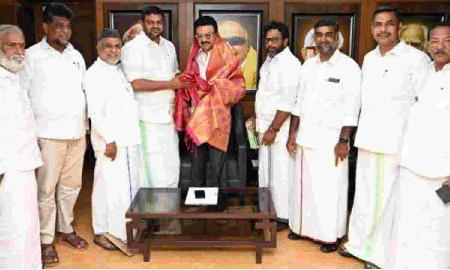 ചെന്നൈ: തമിഴ്നാട് മുഖ്യമന്ത്രി എം കെ സ്റ്റാലിനുമായി കൂടിക്കാഴ്ച നടത്തി എസ്ഡിപിഐ നേതാക്കള്. എസ്ഡിപിഐ തമിഴ്നാട് സംസ്ഥാന പ്രസിഡന്റ് നെല്ലൈ മുബാറക്ക് അടക്കമുള്ള നേതാക്കളാണ് ചെന്നൈയിലെ ഡിഎംകെയുടെ ആസ്ഥാനത്തെത്തി സ്റ്റാലിനെ കണ്ടത്. സ്റ്റാലിനും ഡിഎംകെ എംപിയായ ഡി രാജയും ചേര്ന്ന് എസ്ഡിപിഐ നേതാക്കളെ സ്വീകരിച്ചു. ഭരണഘടനാ വിരുദ്ധമായ വഖ്ഫ് നിയമം നടപ്പാക്കില്ല എന്ന നിലപാടെടുത്ത എംകെ സ്റ്റാലിനെ ഷാള് അണിയിക്കുകയും എസ്ഡിപിഐയുടെ സ്നേഹോപഹാരം സമ്മാനിക്കുകയും ചെയ്തു.