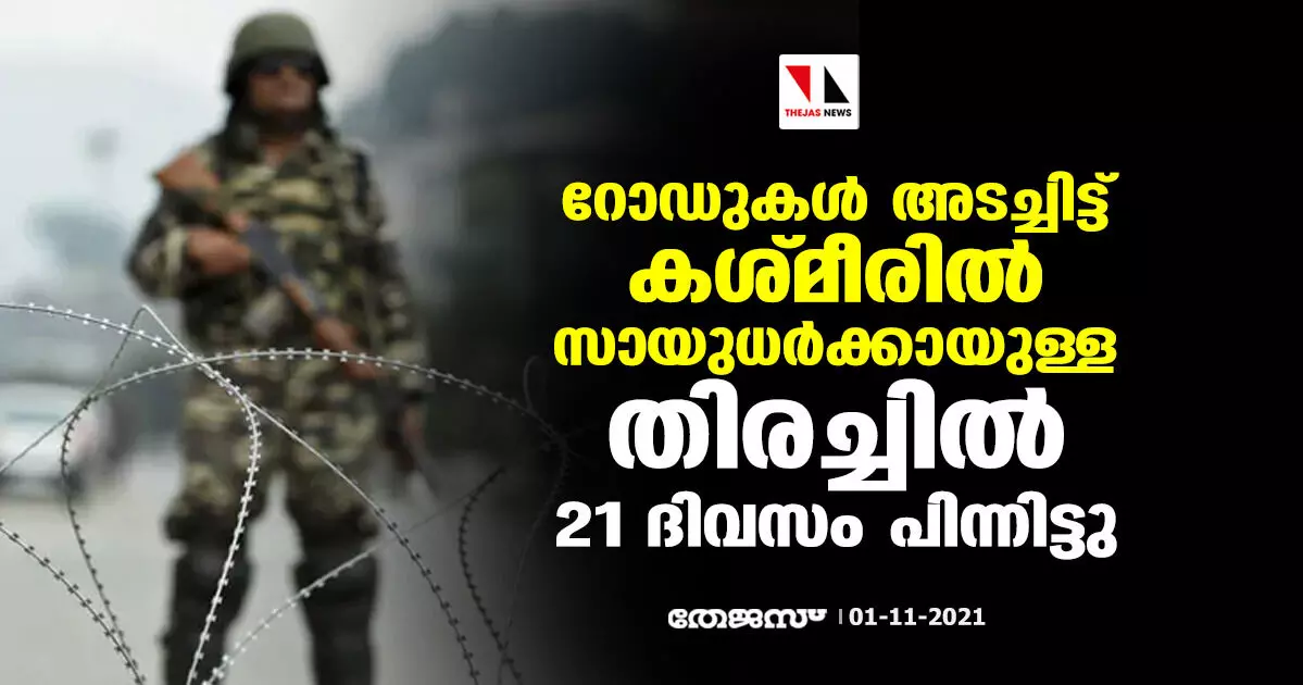 റോഡുകൾ അടച്ചിട്ട് കശ്മീരിൽ സായുധർക്കായുള്ള തിരച്ചിൽ 21 ദിവസം പിന്നിട്ടു