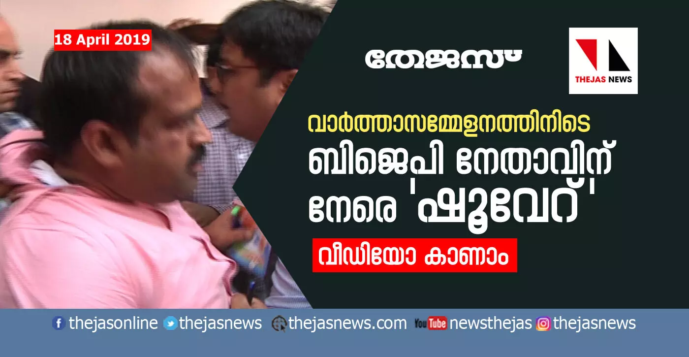 #WATCH Delhi: Shoe hurled at BJP MP GVL Narasimha Rao during a press conference at BJP HQs .More details awaited pic.twitter.com/7WKBWbGL3r