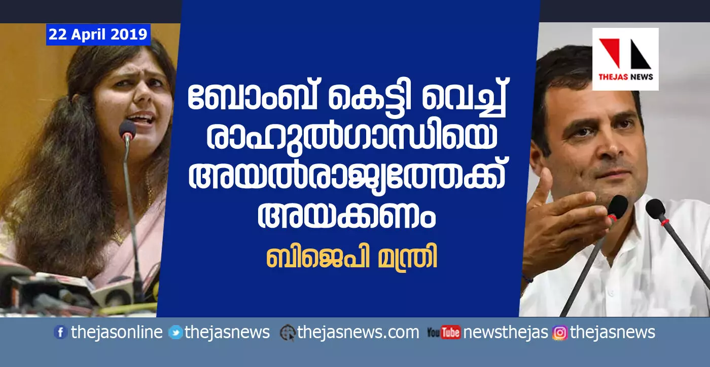 ബോംബ് കെട്ടി വെച്ച് രാഹുല്ഗാന്ധിയെ അയല്രാജ്യത്തേക്ക് അയക്കണം: ബിജെപി മന്ത്രി