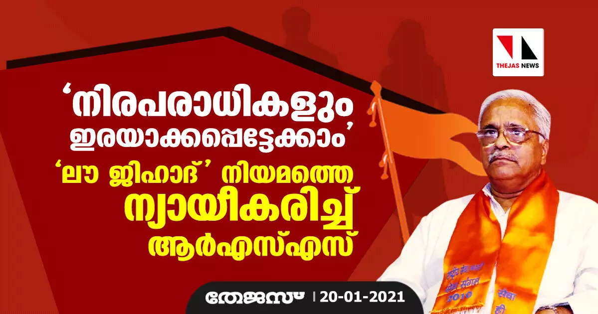'നിരപരാധികളും ഇരയാക്കപ്പെട്ടേക്കാം'; 'ലൗ ജിഹാദ്' നിയമത്തെ ന്യായീകരിച്ച് ആര്എസ്എസ്