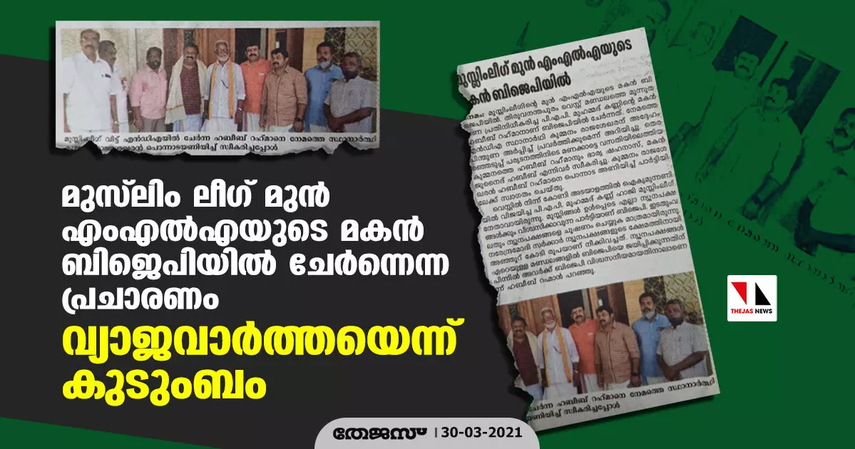 മുസ്ലിം ലീഗ് മുന് എംഎല്എയുടെ മകന് ബിജെപിയില് ചേര്ന്നെന്ന പ്രചാരണം; വ്യാജവാര്ത്തയെന്ന് കുടുംബം