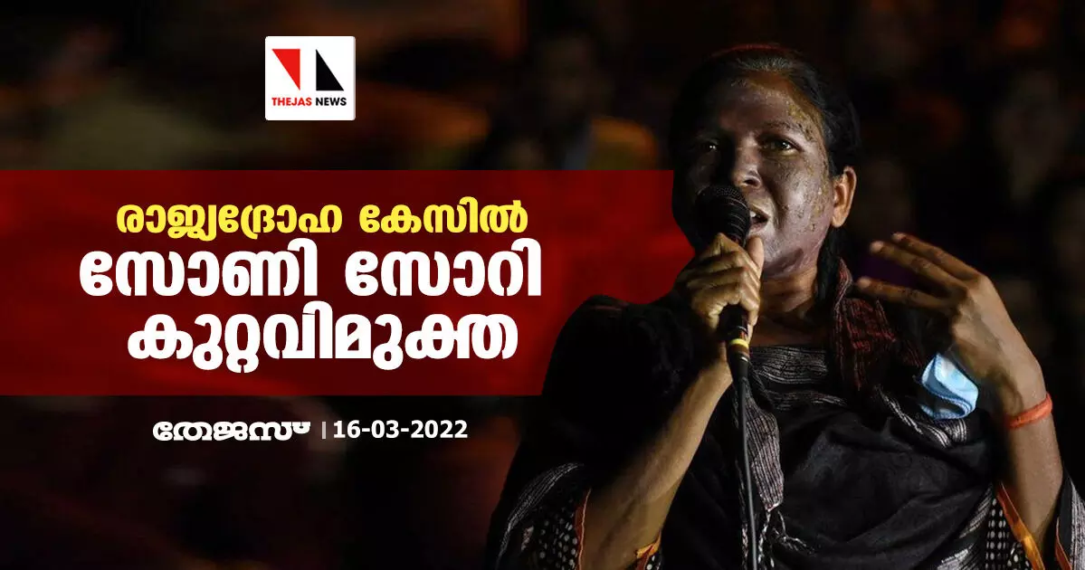 റായ്പൂര്:രാജ്യദ്രോഹക്കേസില് അറസ്റ്റിലായ ഛത്തീസ്ഗഢിലെ ഗോത്രവിഭാഗം നേതാവും പ്രമുഖ മനുഷ്യാവകാശ പ്രവര്ത്തകയുമായ സോണി സോറിയെ കോടതി വെറുതെവിട്ടു. ഛത്തീസ്ഗഡിലെ ദന്തേവാഡയിലെ പ്രത്യേക കോടതിയാണ് ചൊവ്വാഴ്ച സോണി സോറിയെ കുറ്റവിമുക്തയാക്കിയത്.
