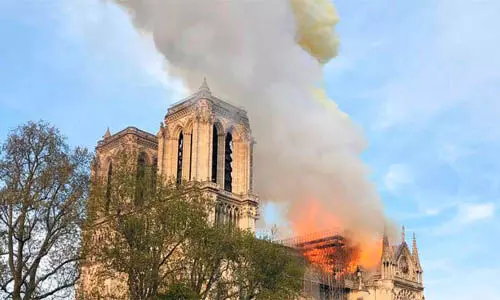 തിങ്കളാഴ്ച രാത്രി വൈകിയാണ് തീപ്പിത്തമുണ്ടായത്. തീ അണയ്ക്കാനുള്ള ശ്രമങ്ങള് തുടരുകയാണ്. കത്തീഡ്രലിന്റെ ഗോപുര മണികള്ക്ക് മുകളില്വരെ തീ ഉയര്ന്നു. തീപ്പിടത്തത്തെ തുടര്ന്നുണ്ടായ പുക വലിയതോതില് ഉയരുന്നുമുണ്ട്.