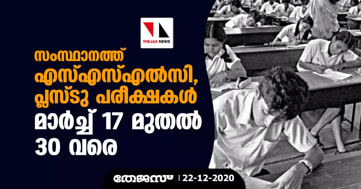 സംസ്ഥാനത്ത് എസ്എസ്എല്സി, പ്ലസ് ടു പരീക്ഷകള് മാര്ച്ച് 17 മുതല് 30 വരെ
