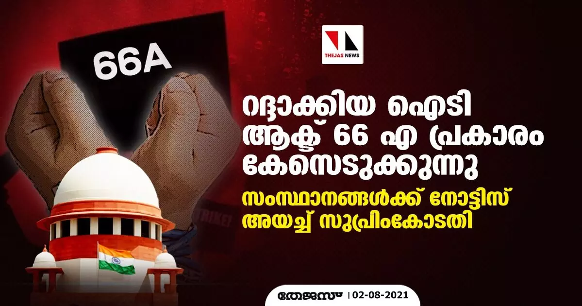 റദ്ദാക്കിയ ഐടി ആക്ട് 66 എ പ്രകാരം കേസെടുക്കുന്നു; സംസ്ഥാനങ്ങള്ക്ക് നോട്ടിസ് അയച്ച് സുപ്രിംകോടതി