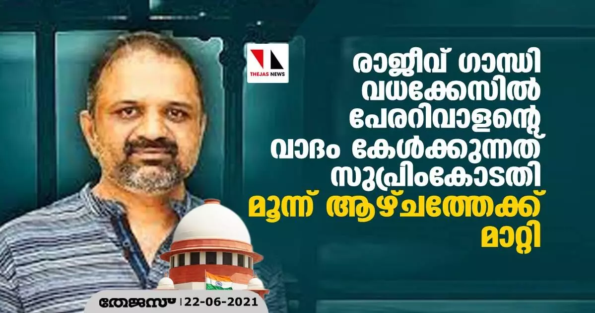 രാജീവ് ഗാന്ധി വധക്കേസിൽ പേരറിവാളന്റെ വാദം കേൾക്കുന്നത് സുപ്രിംകോടതി 3 ആഴ്ചത്തേക്ക് മാറ്റി