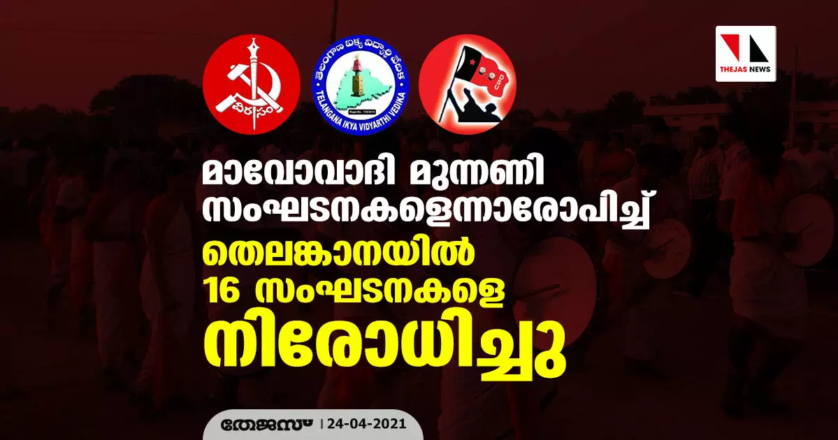 മാവോവാദി മുന്നണി സംഘടനകളെന്നാരോപിച്ച് തെലങ്കാനയിൽ 16 സംഘടനകളെ നിരോധിച്ചു