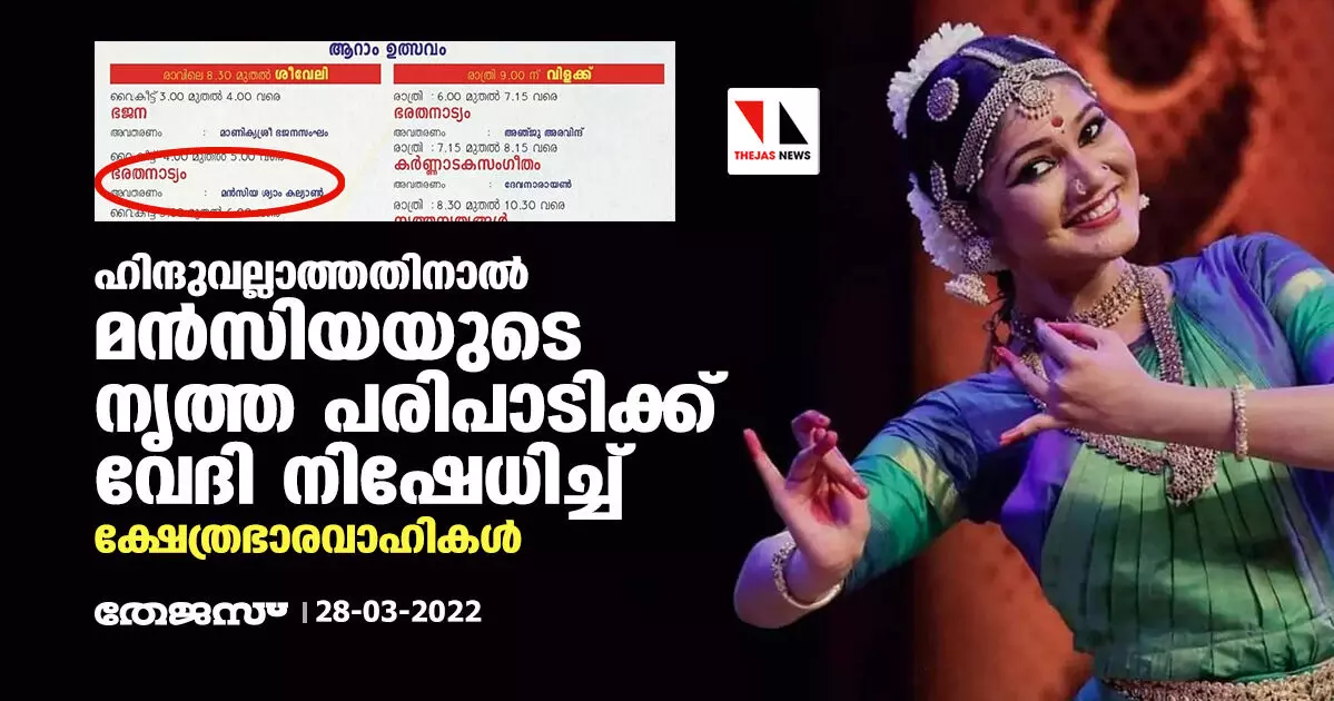 ഹിന്ദുവല്ലാത്തതിനാല് മന്സിയയുടെ നൃത്ത പരിപാടിക്ക് വേദി നിഷേധിച്ച് ക്ഷേത്രഭാരവാഹികള്