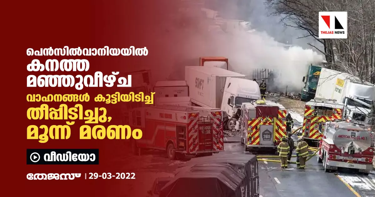 പെന്സില്വാനിയയില് കനത്ത മഞ്ഞുവീഴ്ച; വാഹനങ്ങള് കൂട്ടിയിടിച്ച് തീപ്പിടിച്ചു, മൂന്ന് മരണം (വീഡിയോ)