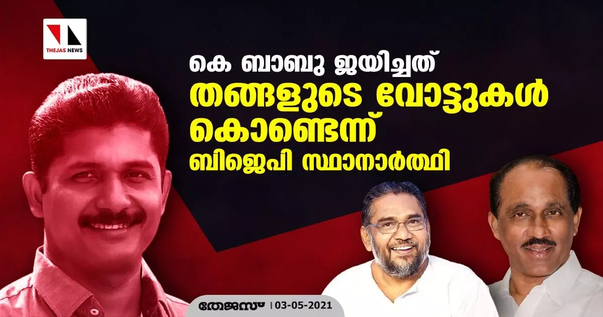 കെ ബാബു ജയിച്ചത് തങ്ങളുടെ വോട്ടുകൾ കൊണ്ടെന്ന് ബിജെപി സ്ഥാനാർത്ഥി