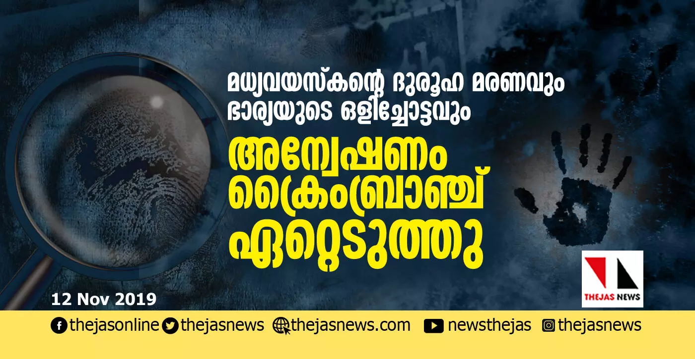 മധ്യവയസ്കന്റെ ദുരൂഹ മരണവും ഭാര്യയുടെ ഒളിച്ചോട്ടവും; അന്വേഷണം ക്രൈംബ്രാഞ്ച് ഏറ്റെടുത്തു