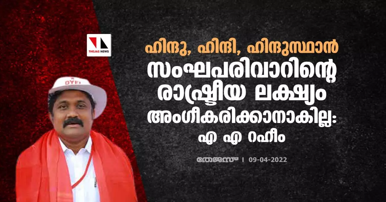 ഹിന്ദു, ഹിന്ദി, ഹിന്ദുസ്ഥാന് സംഘപരിവാറിന്റെ രാഷ്ട്രീയ ലക്ഷ്യം; അംഗീകരിക്കാനാകില്ല: എ എ റഹീം